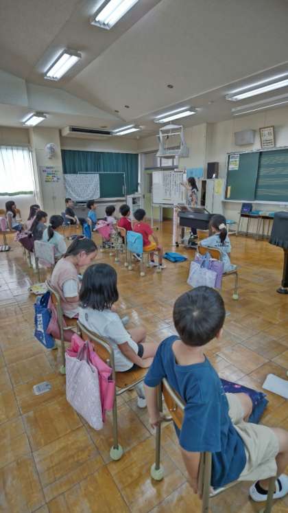 [3年生音楽]今日は専科の授業特集です。続いて3年生の音楽です。今、4階で音楽室に一番近いところにいる3年生です。