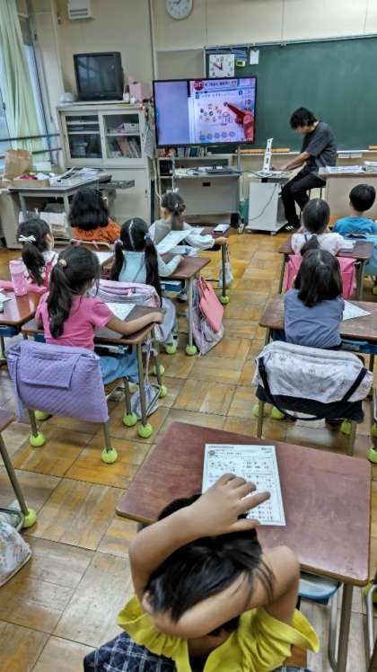 [1年生算数]「10よりおおきいかず」の学習です。「たしかめシート」の答え合わせをしています。