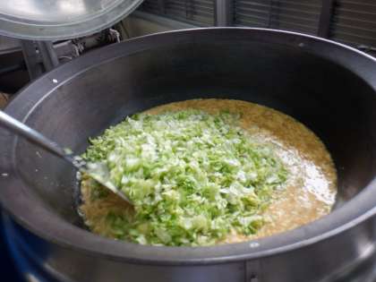 *給食では、レタスは生では食べることができないので、できあがり直前にスープに入れて作りました。写真3枚目