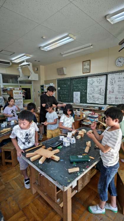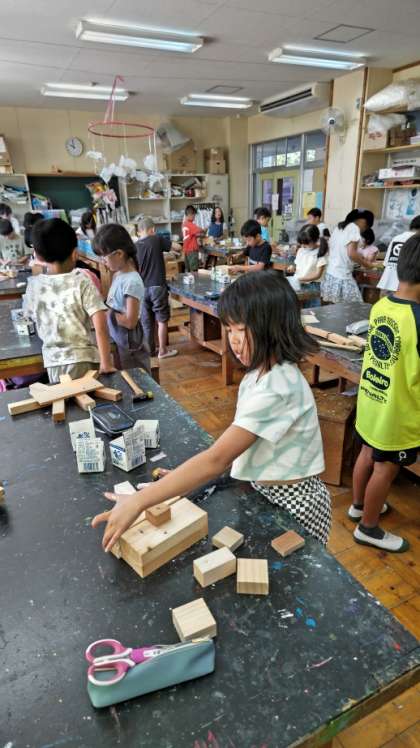 (くぎで木を上手につないで、楽しいものを作りましょう)