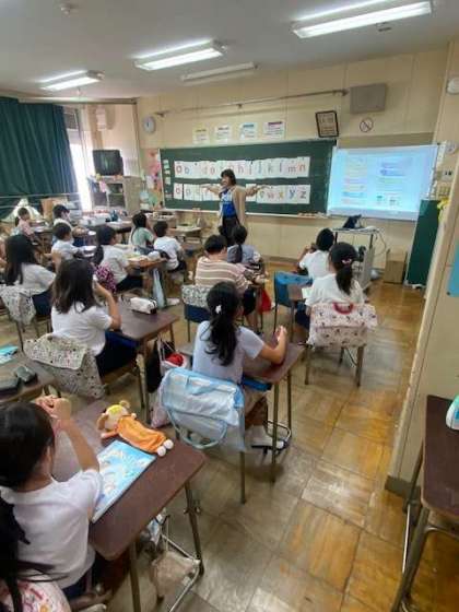 抜き出した小文字を子供たちが正しい場所に並べていきます。