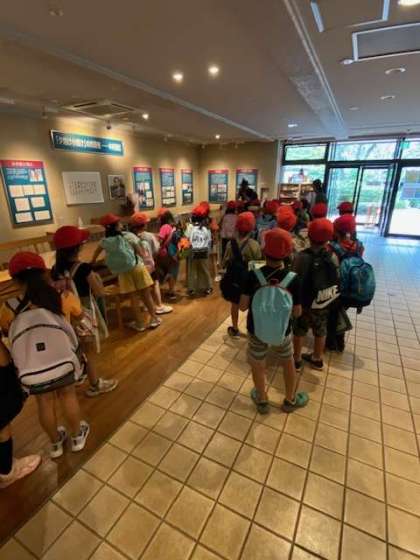 バスに乗る前に、夕焼け小焼けの作詞者、中村雨紅さんの説明を見学しました。