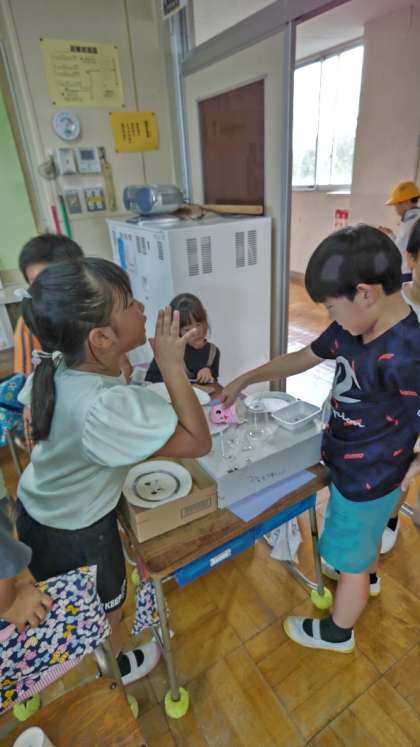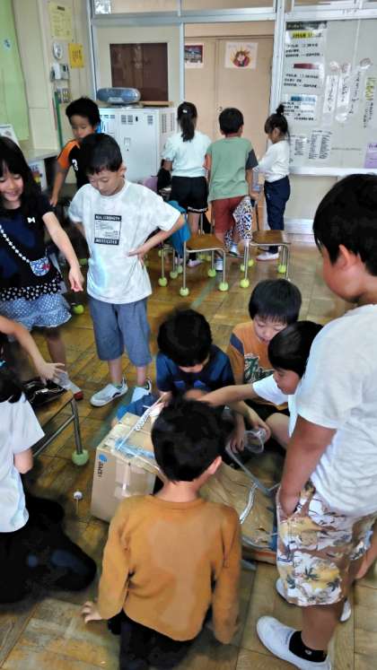 (お互いのお店を回って、手作りおもちゃで遊んでいます)