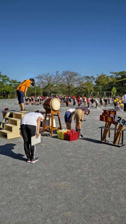 (児童の司会で閉会式も行います。得点結果発表がクライマックス)