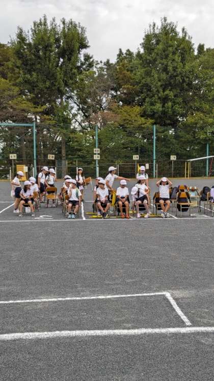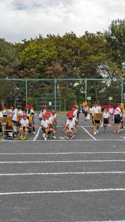 (児童席に子供たちが着きました。もうすぐ開会です)