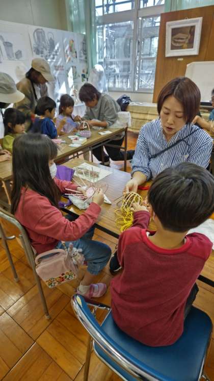 (校舎内には小中学校運営協議会の工作体験クラフトコーナーがありました。下柚木小からも委員さんや先生たちが参加しました)