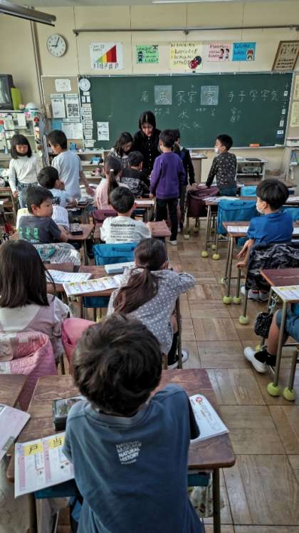 [2年生国語]新出漢字の学習をしています。今日は「家」と「角」のようです。どちらもいろいろな読み方ができる漢字ですね。