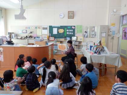 司書の先生に「ポテト村のコロッケまつり」の絵本を読み聞かせしていただきました。写真2枚目