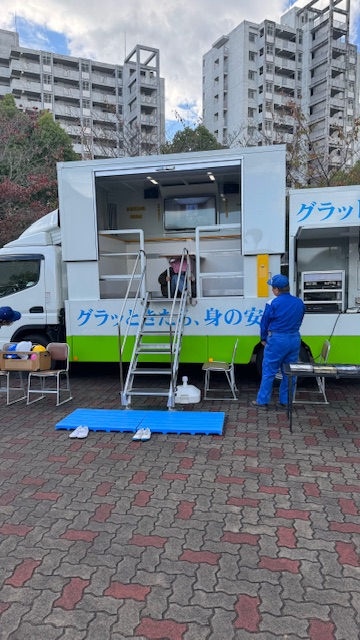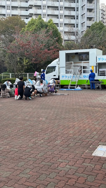 全体での避難訓練の後に、6年生全員が起震車体験を行いました。