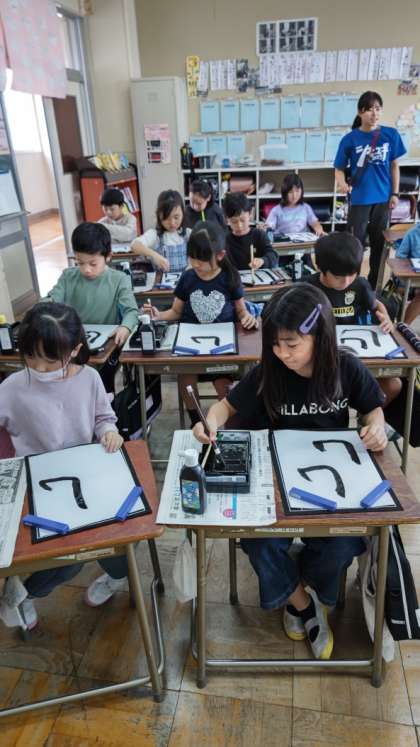 (いろいろな筆使いを練習中。今日は「曲がり」)