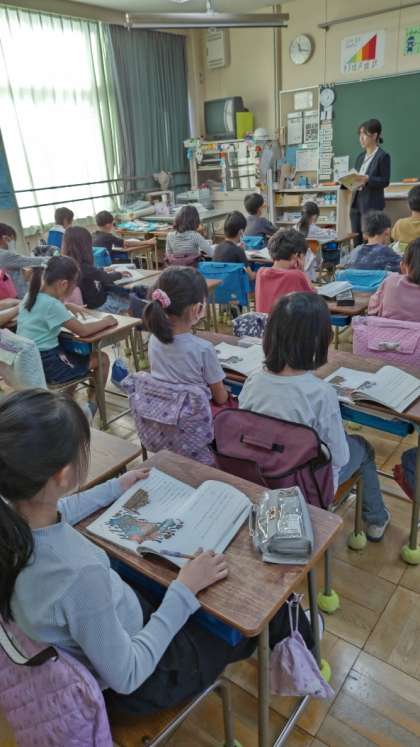 [2年生国語]名作「ないた赤おに」です。登場人物の気持ちの移り変わりを考えながら、読み取ります。