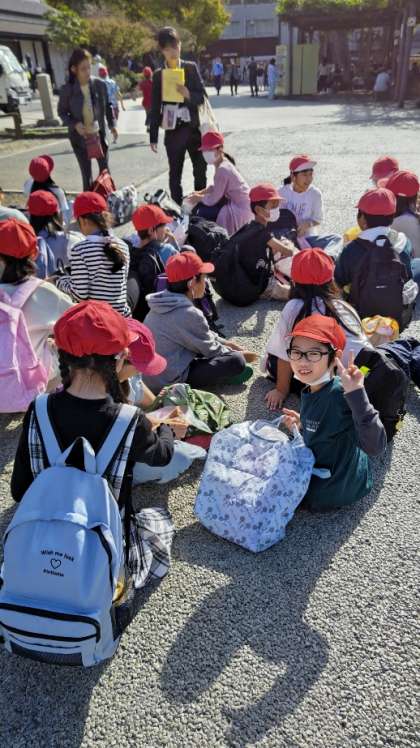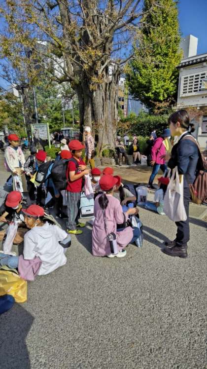1230 買い物タイム終了。集合場所へ集まります。荷物を大事そうに抱えています。