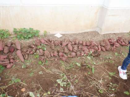 *1年生が育てたさつまいもが収穫されました。すこし寝かせてあまくなったら、給食でも使用したいと思います。どんな料理になるかは、お楽しみに!