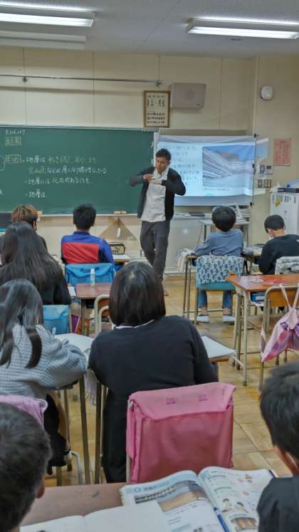 [6年生理科]「大地のつくりと変化」の学習です。様々な地層の様子について学びます。