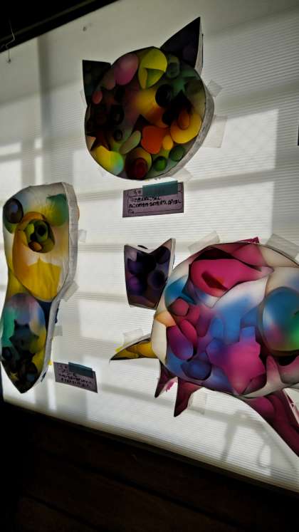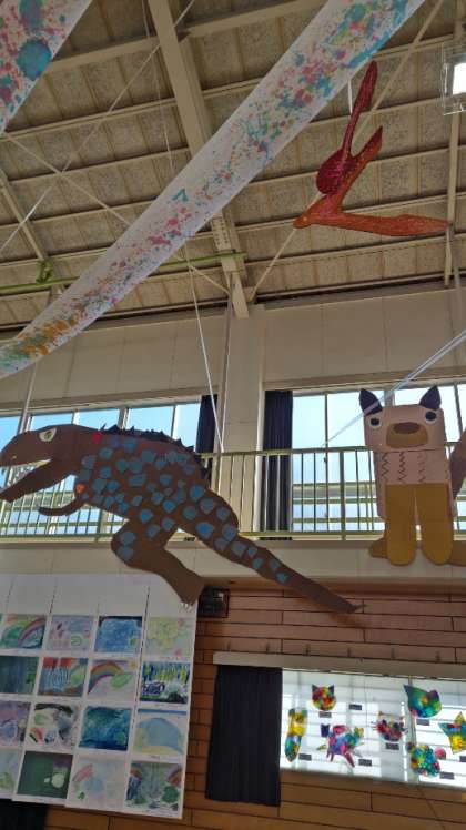 3年生「色と形のハーモニー」「みんなで切ってつないで大へんしん(共同作品)」