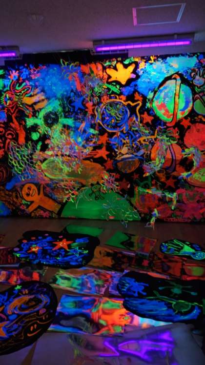 5年生「とうとう完成!トートバッグ」「ブラックライトギャラリー(共同作品)」