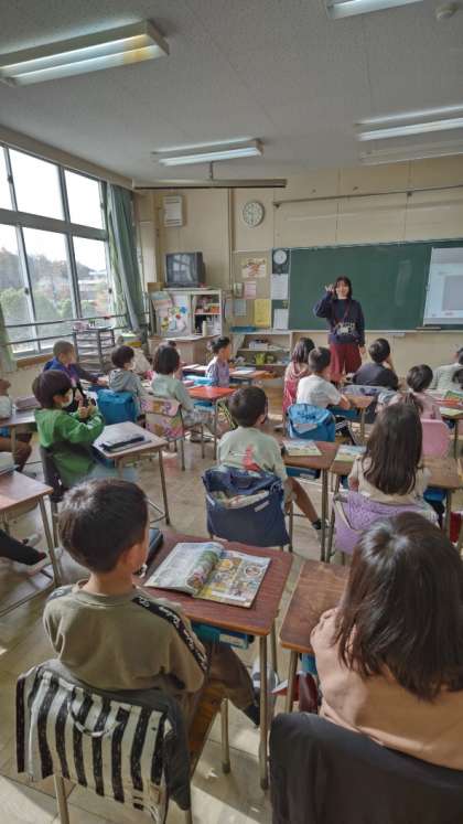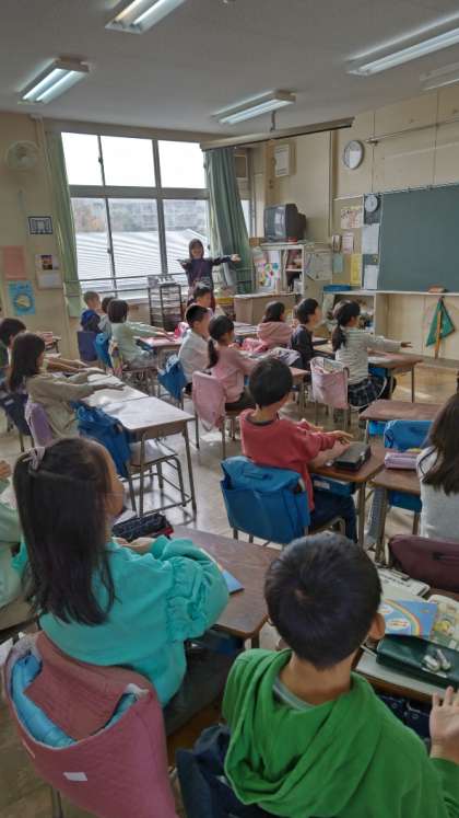 [3年生外国語活動]動画を見ながら英語の歌をみんなで歌っています。楽しそうです。