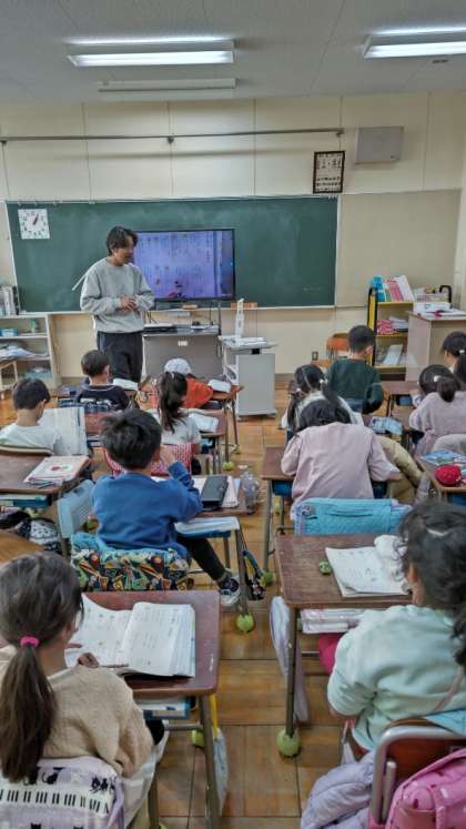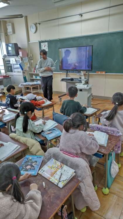 [1年生国語]校庭から戻って国語の学習、今日は言葉の勉強「かん字のよみかた」です。