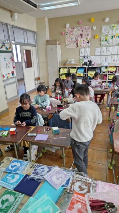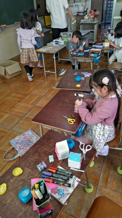 (きれいに紙を貼って、ポスカで模様を付けます)