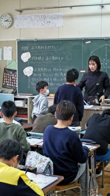 (円の中心角を6等分して、同じ角度で半径を順にかいてみよう)