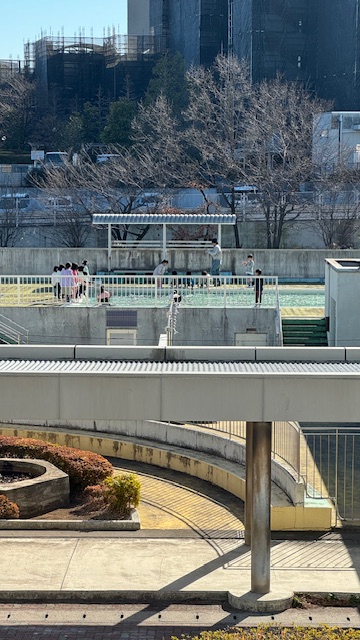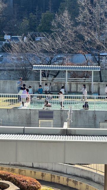 今朝は大変気温が低かったので、プールに氷が張りました。