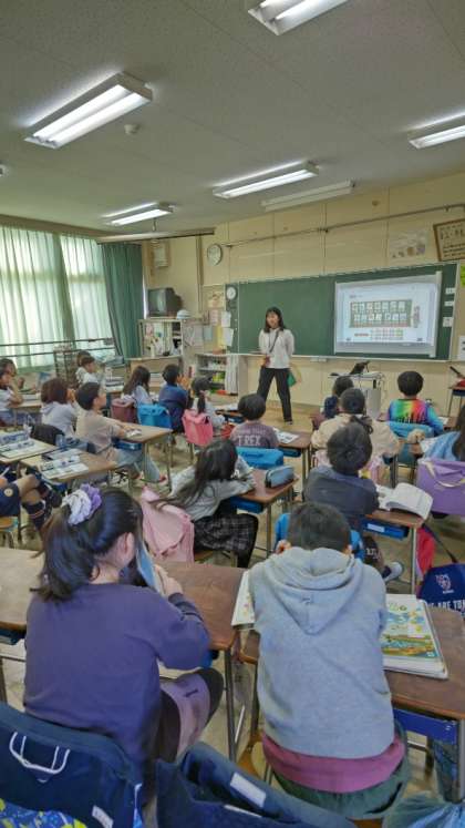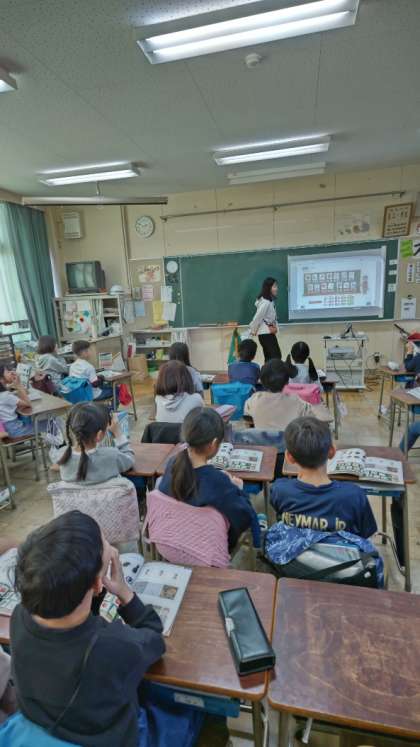 [3年生外国語活動]「What's this?(これなあに)」の学習です。ヒントを英語で聞きながら答えが何か当てます。