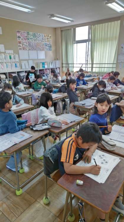 [2年生算数]今日の午後は、低学年の補習的学習の時間です。複数の先生が教室にいます。練習問題をどんどん解いていきます。