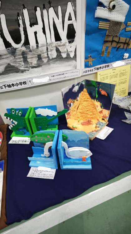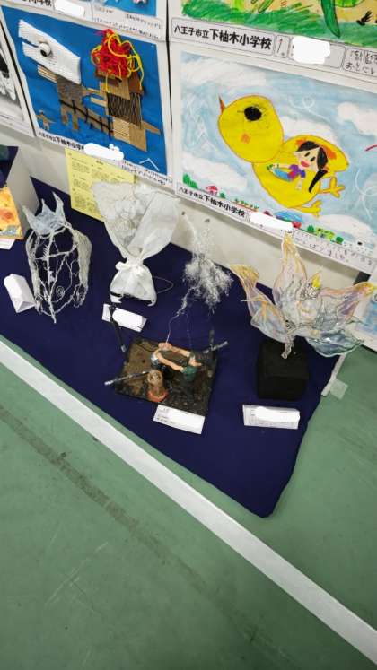 以前のお知らせのとおり、八王子市内小中学校の合同作品展「おおるり展」が1/18(木)から1/22(月)まで京王高尾線狭間駅前のエスフォルタアリーナで開催中です。下柚木小からも代表児童の作品が出品されています。