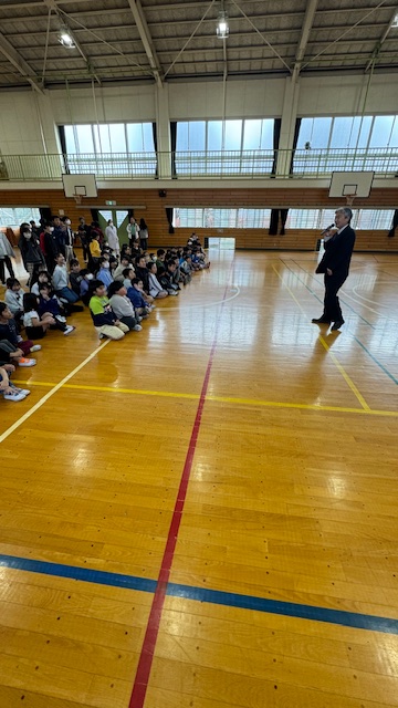 本日昼休みに、先日到着した大谷選手からのグローブお披露目会を臨時集会として開催しました。