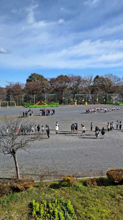 休み時間に子供たちが校庭に出てきます。今は大縄週間です。クラスごとに練習しています。低学年はまずは楽しく跳びましょう。
