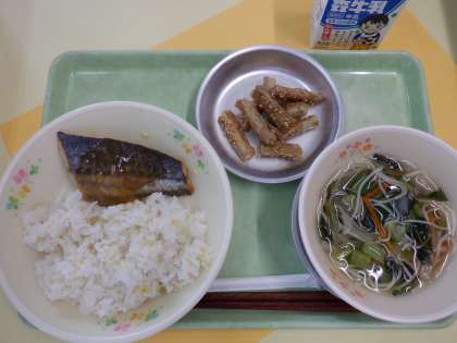 *今日は、岡山県の郷土料理です。今日は大雪が降って、納品業者さんも配送が大変でした。食材が無事到着すると、調理員さんもほっと胸をなでおろして作業開始です。給食の工程表も変えたりしながら間に合ってよかったです。