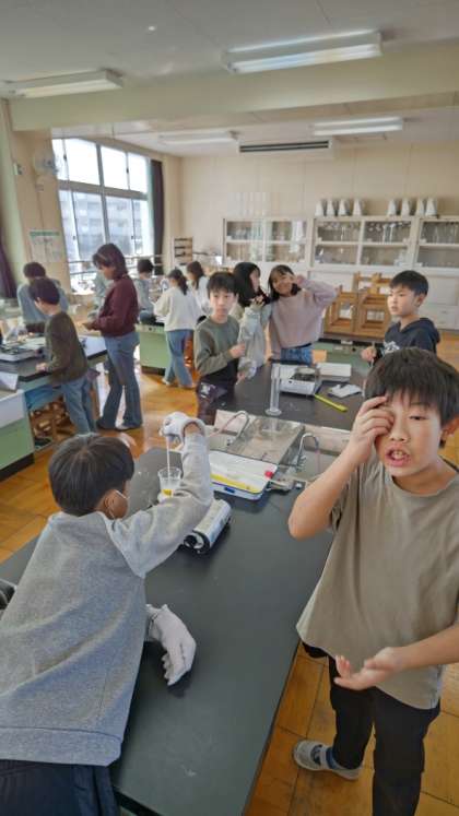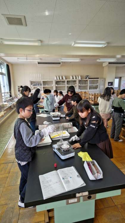 [5年生理科]「もののとけ方」の学習です。実験をしています。やっぱり理科の実験は楽しいですね。