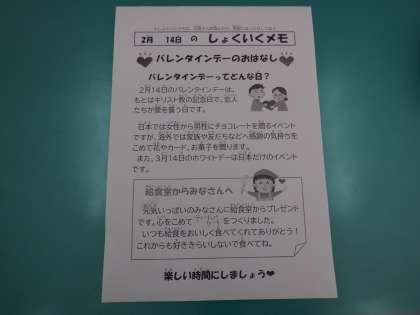 *今日は、バレンタイン献立です。子供たちの大好きなメニューでテンションアップしていました。チョコカップケーキも心を込めて作りました。・・・写真2枚目