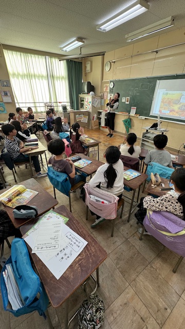 今日は、毎年お世話になっている先生をゲストティーチャーとしてお招きして、外国語活動に取り組んでいます。