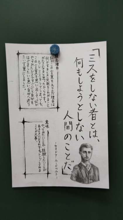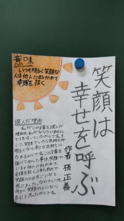 [6年生国語]昨日紹介した「卒業式の日に、自分に送りたい言葉」の続きです。教室前の廊下に掲示してありました。