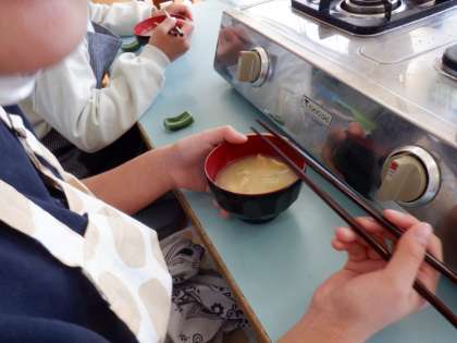 *5年生が家庭科の時間に煮干しのだしで味噌汁を作っていました。給食も味噌汁は煮干しでだしをとることが多いです。煮干しは、水にひたしておいてから火にかけます。どの班もおいしくできたようです。今日は、ちょうど汁物がなかったので良かったです。・・・写真3枚目