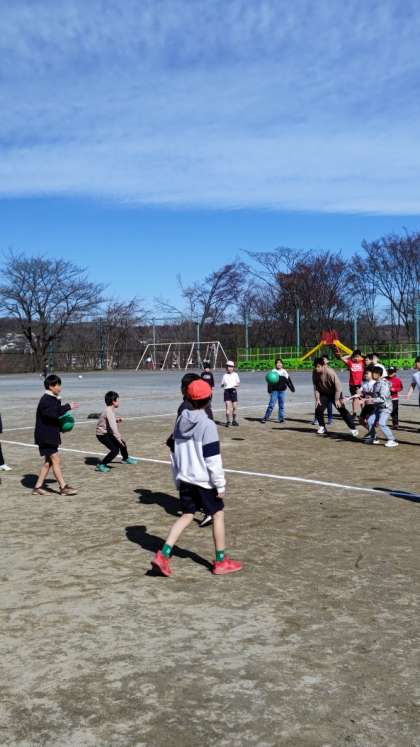 (子供たちが考えた「お姫様ドッジボール」というルールです。みんなでお姫様を守ります)