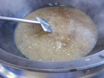 *今日は晴れていますが、数日前はみぞれが降りました。大根おろしを最後に入れてみぞれを表現しました。釜に大根おろしをいれたところ・・・写真2枚目