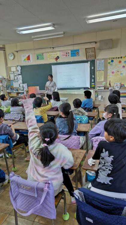 [2年生学活]昨日の4年生と同じように、2年生も「6年生を送る会」の時の、台詞の担当を決めています。