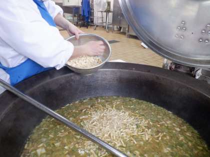 *カレー南蛮はけずりぶしと昆布でだしをとりました。たくさんの八王子野菜が入っています。油揚げを入れているところ・・・写真2枚目