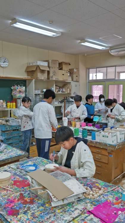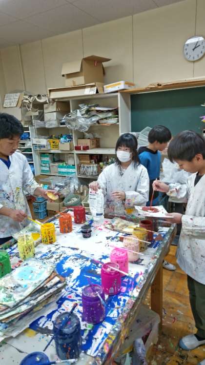[6年生図工]「一枚の板から」の仕上げをしています。実は今日のこの時間が最後の図工になります。
