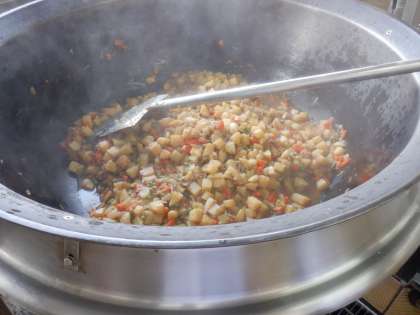 *新じゃがのぴり辛煮を煮ているところ。豆板醤が入っています。・・・写真3枚目