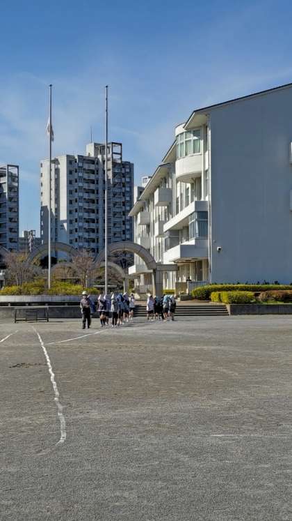 (避難訓練もしました。ポールには半旗が掲げられています)