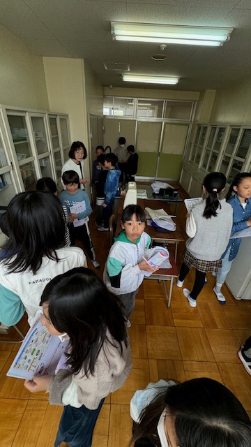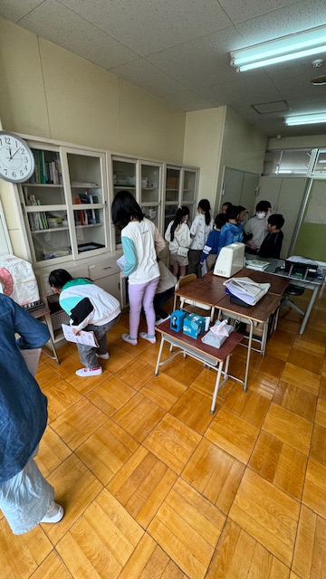 家庭科準備室のどの棚を開けてもいいと言われたので、順番に開けて覗き込んでいます。