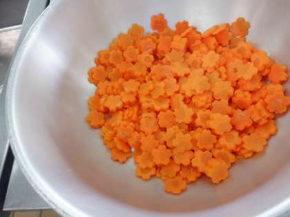 初日なので、マーボー丼に桜のにんじんをかたどりました。・・写真2枚目