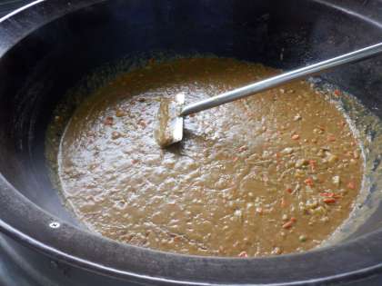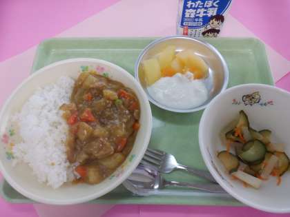 *カレーライスはルーから手作りです。玉ねぎを形がなくなるまで、じっくり炒めて作ります。できあがったところ・・・写真2枚目