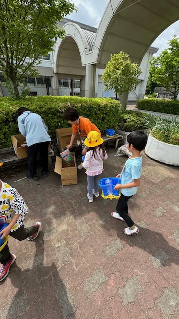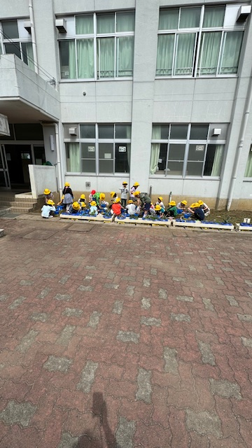 町探検から戻ってくると、ちょうど外で1年生が朝顔の種まきをしていました。