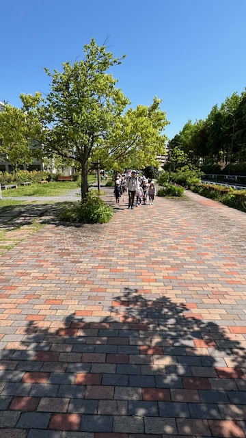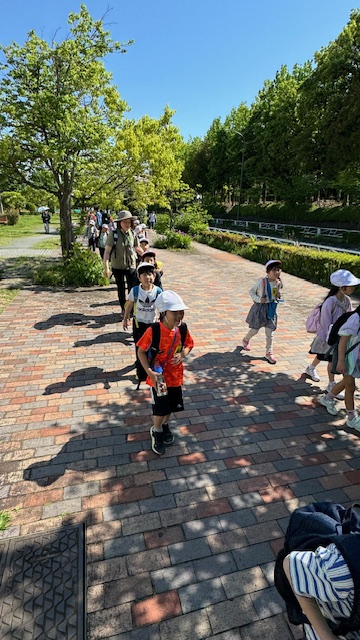 近くの小学校が公園へお出かけするところにも出会いました。