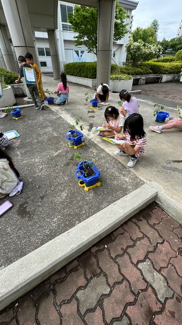 土曜日に植えたミニトマトの観察の続きを行っています。