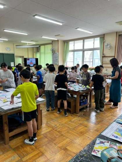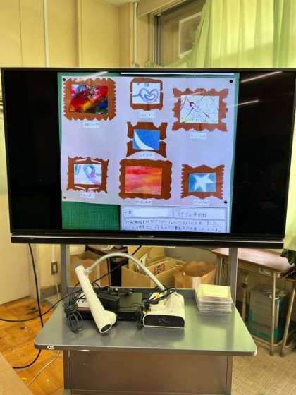 単元名「モダンテクニック美術館」として、絵の具を使った様々な表現方法を学び、イメージを広げる段階の学習です。